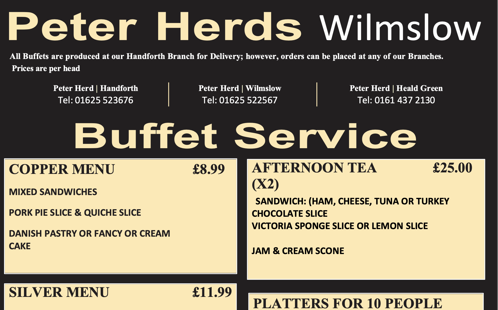 Corporate buffets: We supply a number of businesses in our local area with buffets for breakfasts, lunches and working lunches.